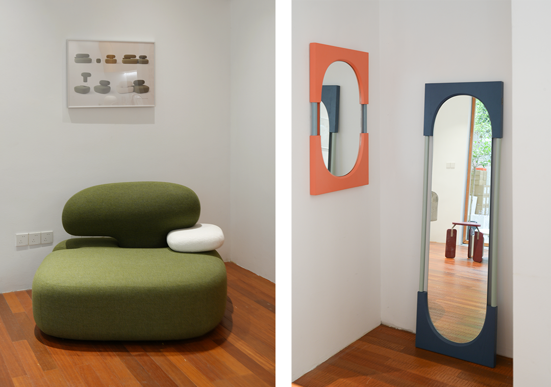 The Noon Mirror, stretched from the Jianze brand symbol "0", is presented through a fusion of colored wood and ultra-clear mirror surface. The half-length version hangs on the wall like a window frame, while the full-length version leans playfully beside it, dispersing a fashionable atmosphere into daily life.
