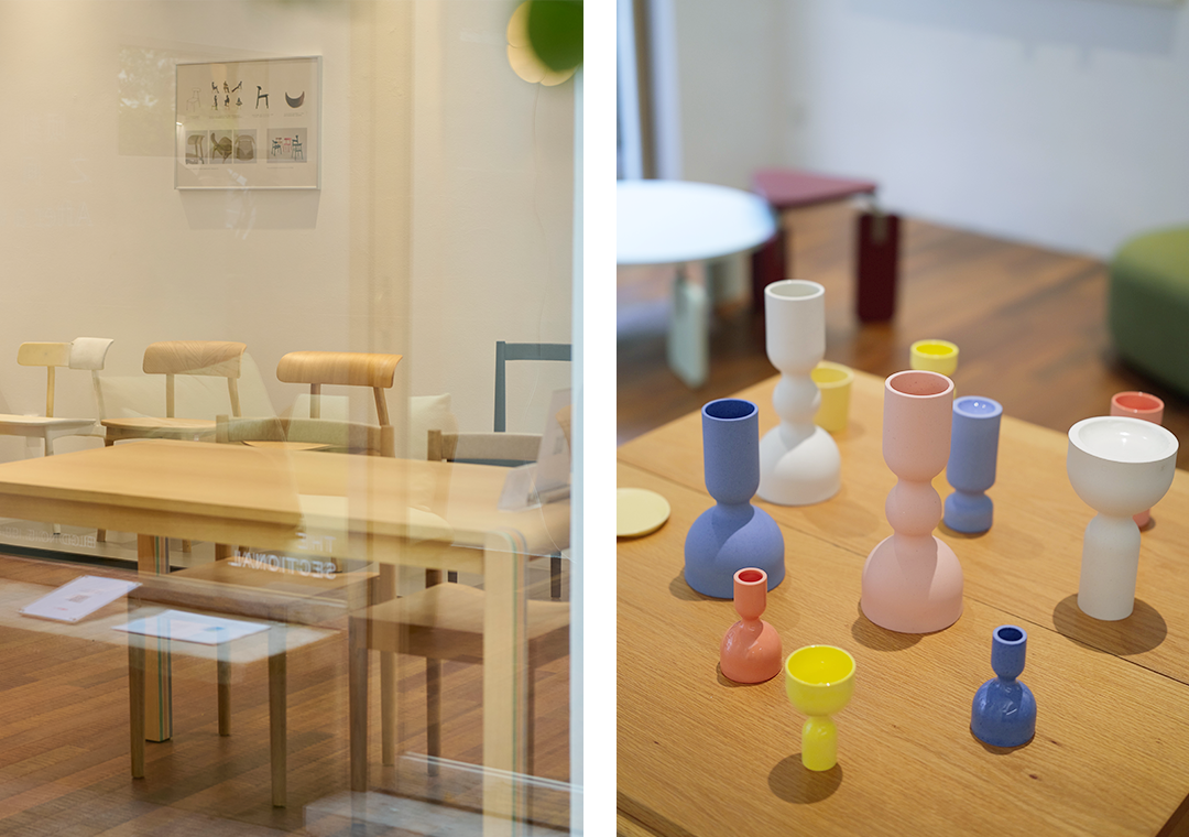 The Wafer Table in the 1.4-meter version is also presented offline for the first time, demonstrating the small long table's suitability for interiors of singles, shared rentals, or small families. The legs distributed at the four corners and the lightweight structure allow it to comfortably serve as a dining table, desk, etc., while saving space.