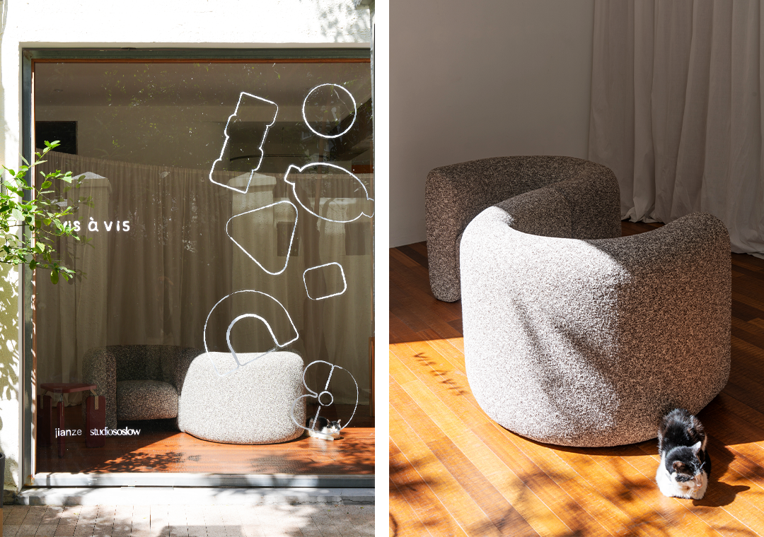 vis-à-vis is a design exploration jointly initiated by the Chinese original home design brand Jianze and design studio Studiososlow since 2023. This exhibition marks the first comprehensive presentation of this product series, which includes furniture and home goods.