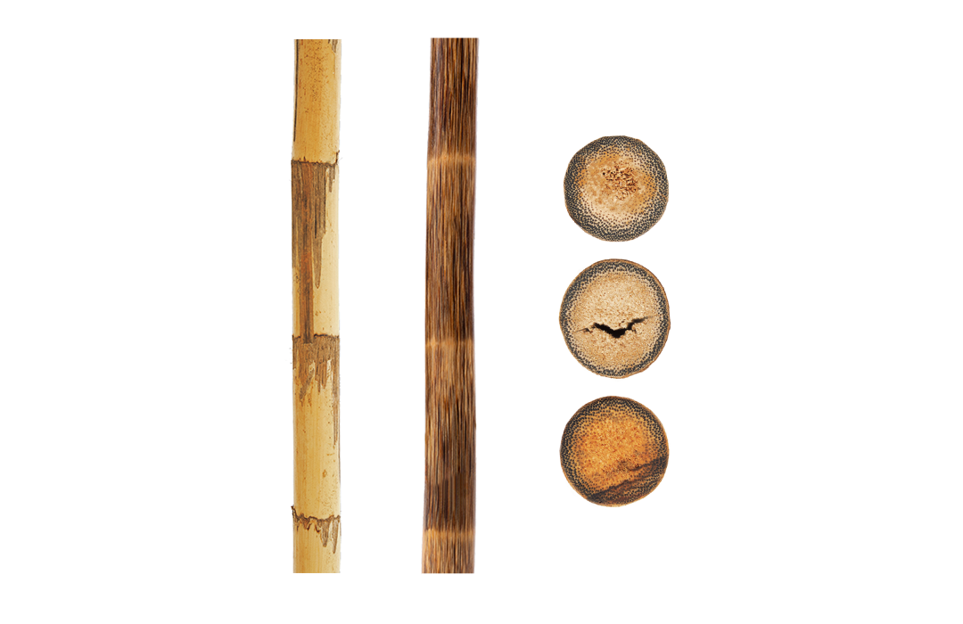 Comparison of the Zong Zhu before and after peeling and processing, fibers exposed on the cross-section