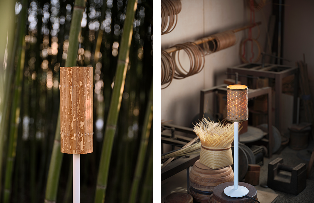 The designs are led by Ville Kokkonen, with an overall restrained simplicity. The sleek cylindrical shape forms a precise dialogue with the bamboo weaving texture, reactivating the vitality of traditional craftsmanship in a modern context.