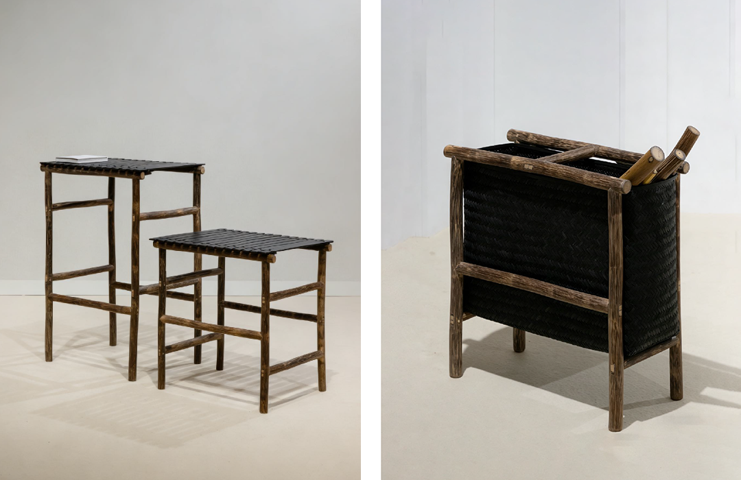 These new works continue the design language of the Zhú Lounge Chair and Side Table, which debuted last year, while expanding the functional dimensions of the brown bamboo system. From seating to storage, from single pieces to a series, the brown bamboo system is gradually building a complete spectrum of household objects.